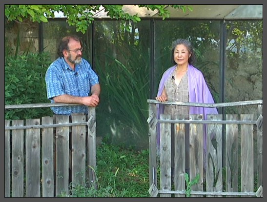 The purple shawl Yoshiko is wearing is dyed with murex (shell) purple by Taeko Yamamura on Gunma silk woven in Japan.