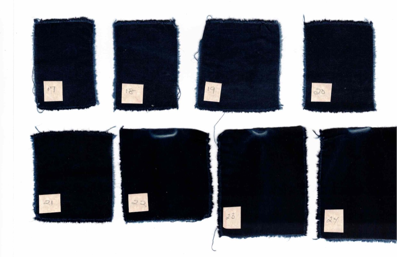Indigo on cotton cloth, same vat: 1-24 ten-minute dips. February, 2021
